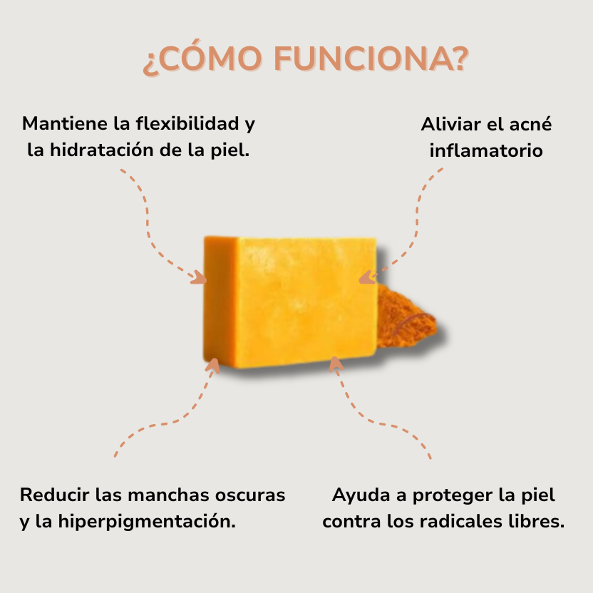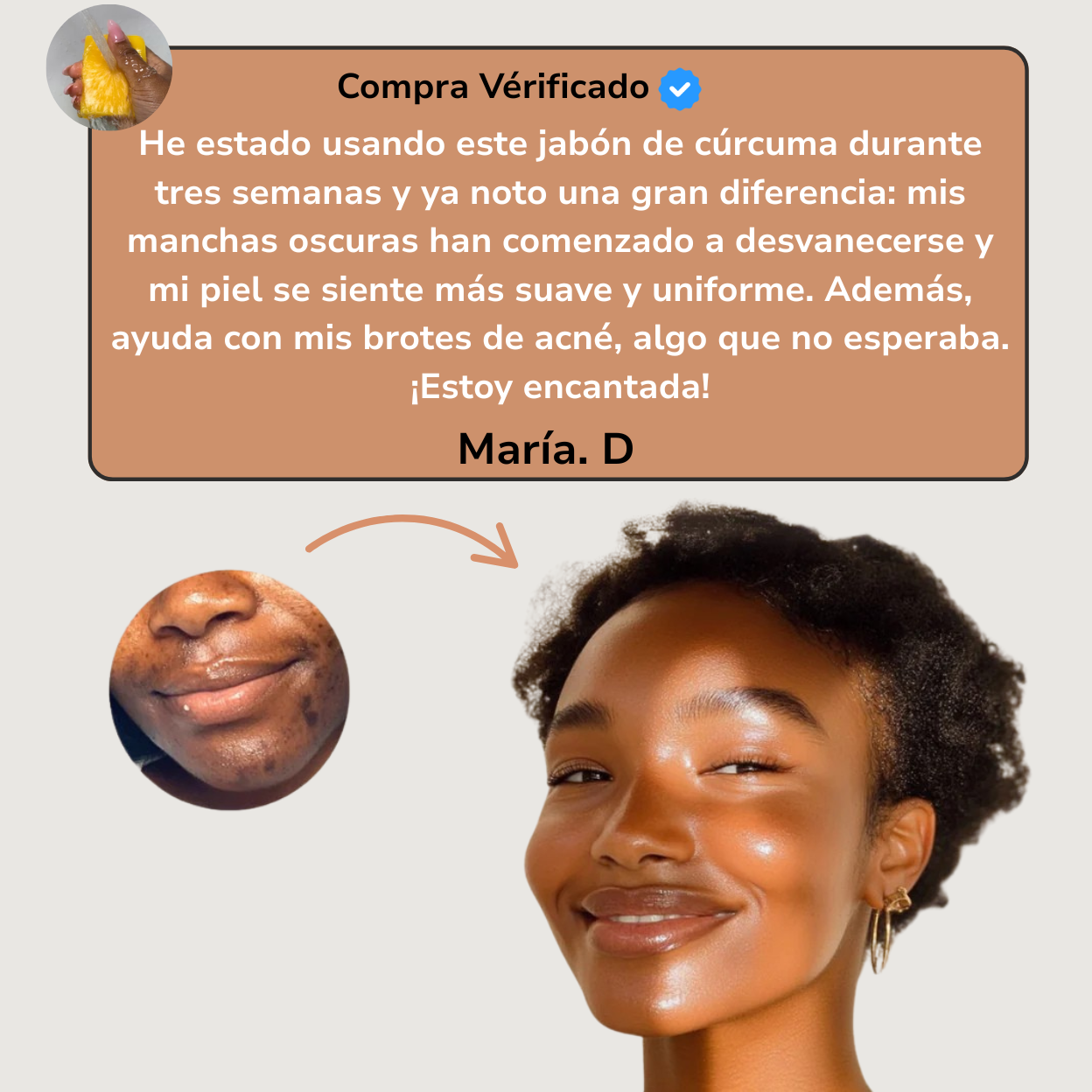 ¿Harta de las manchas, el acné y la hiperpigmentación? Nuestro jabón de cúrcuma purifica, repara e ilumina tu piel desde las primeras aplicaciones.